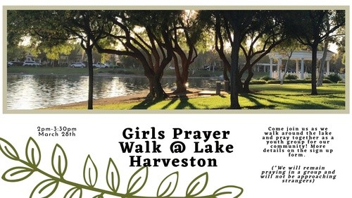 Come join us as we walk around the lake and pray together as a youth group for our community!