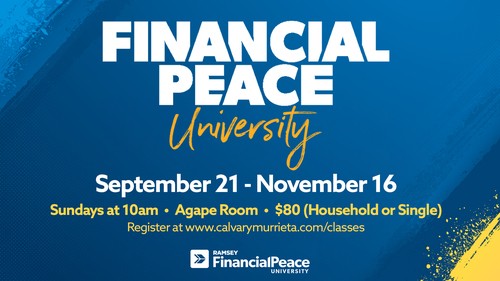 Dave Ramsey's Financial Peace University will help you bring practical and spiritual wisdom to your finances and live in greater financial freedom. The class meets for 9 weeks on Sundays at 10am and costs $80 for class materials.