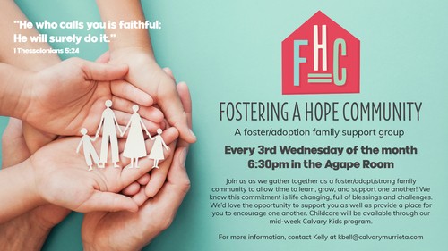 Join us as we gather together and allow time to learn, grow, and support one another in the wonderful and life-changing commitment to foster, adopt, or be a part of our Safe Families for Children Program. Childcare will be available through our mid-week Calvary Kids Program.