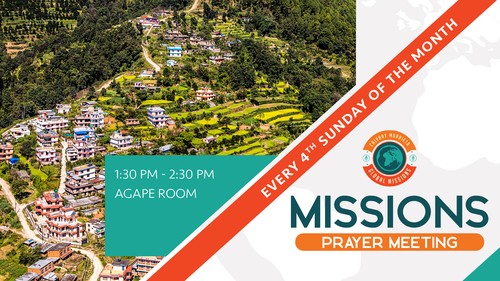 Come lift up the requests from our missionaries serving around the world. We will be meeting in the Agape Room.
