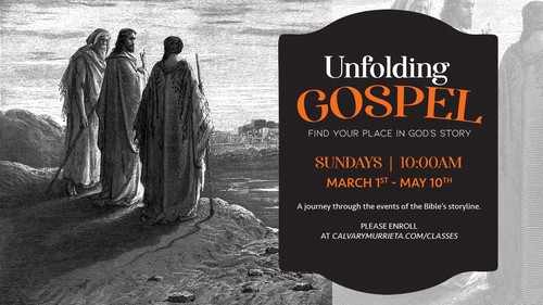 Unfolding Gospel is a journey through the events of the Bible with Jesus at the center. You will learn to read the Bible more fully and find your place in God’s great story. Sessions are every Sunday at 10:00am for eight weeks. This is free class. You can purchase a printed copy of the class material for $20 or you can have the digital copy for free. Please enroll in the class to participate.