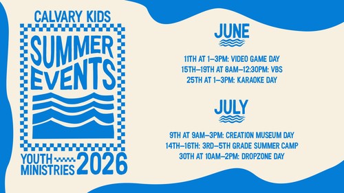 Calvary Kids is a place where children learn about Jesus and grow in their faith and friendship with Him. Serving in children’s ministry gives you the joy of watching kids open their hearts to God and discover how much He loves them. We’re inviting our church family to be part of what God is doing in this ministry. We need servant-hearted volunteers to help as teachers, small group leaders, and assistants so we can continue serving kids well. The commitment is three months through the summer, June-August.